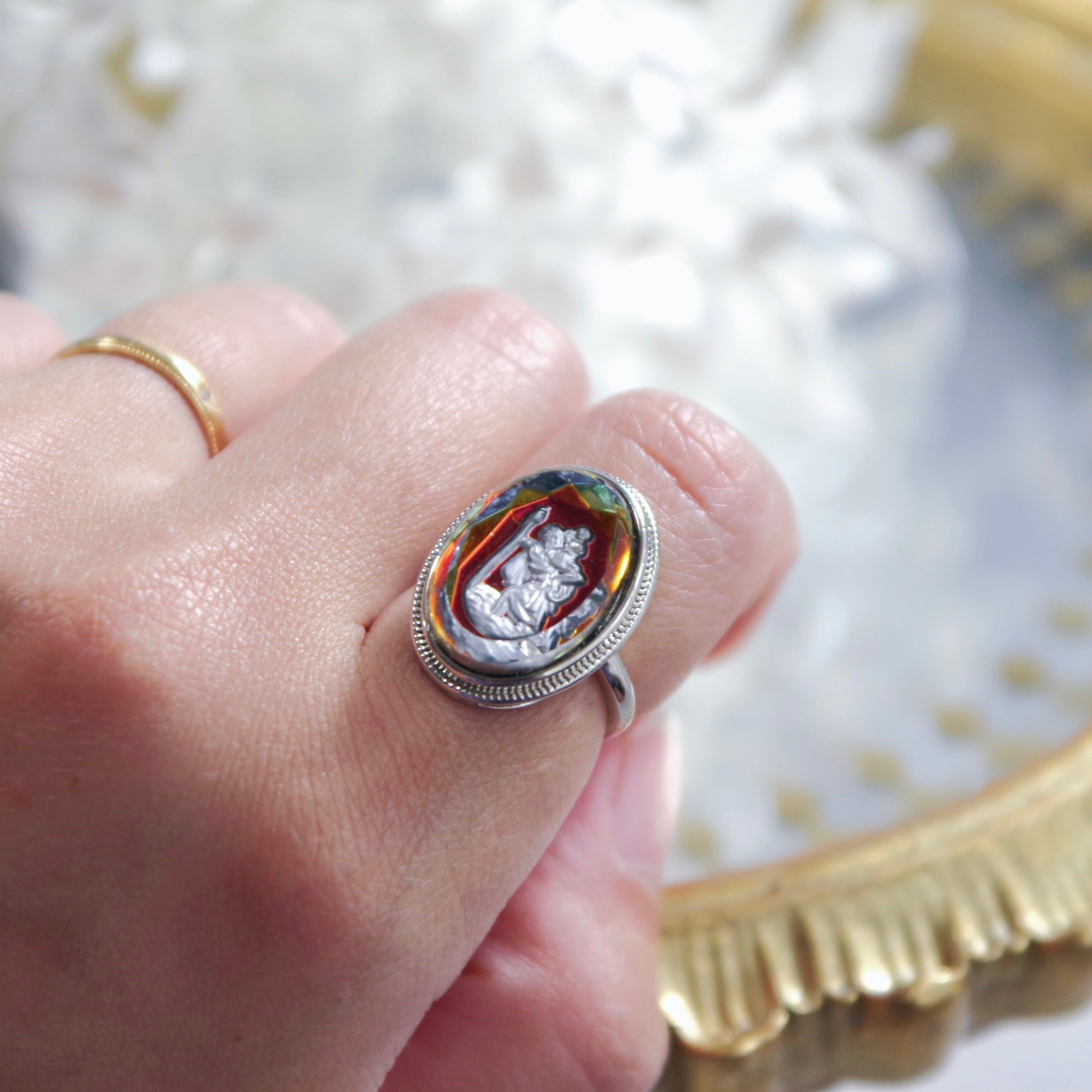 Silver christophorus ring