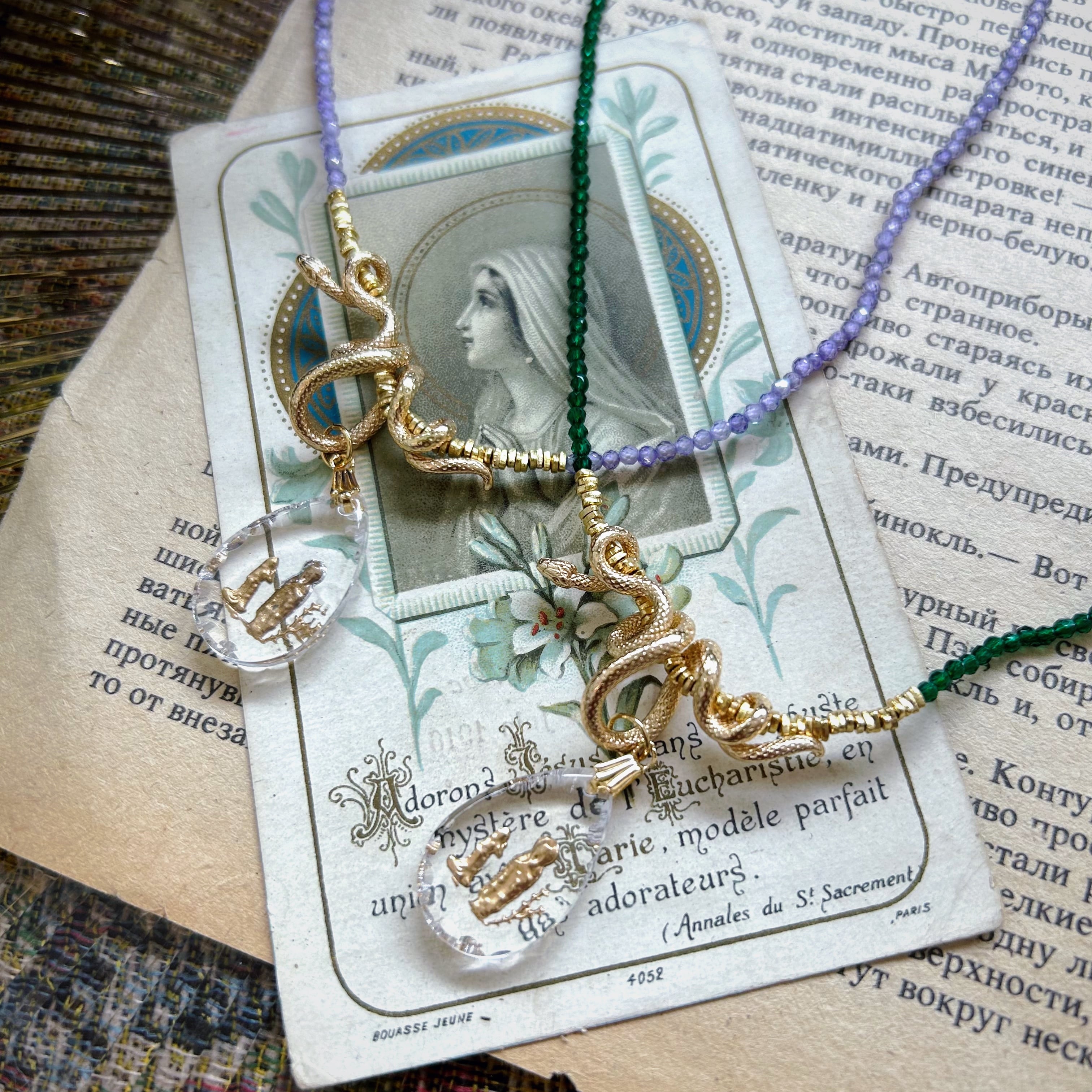 蛇から垂れるルルドの泉のインタリオが