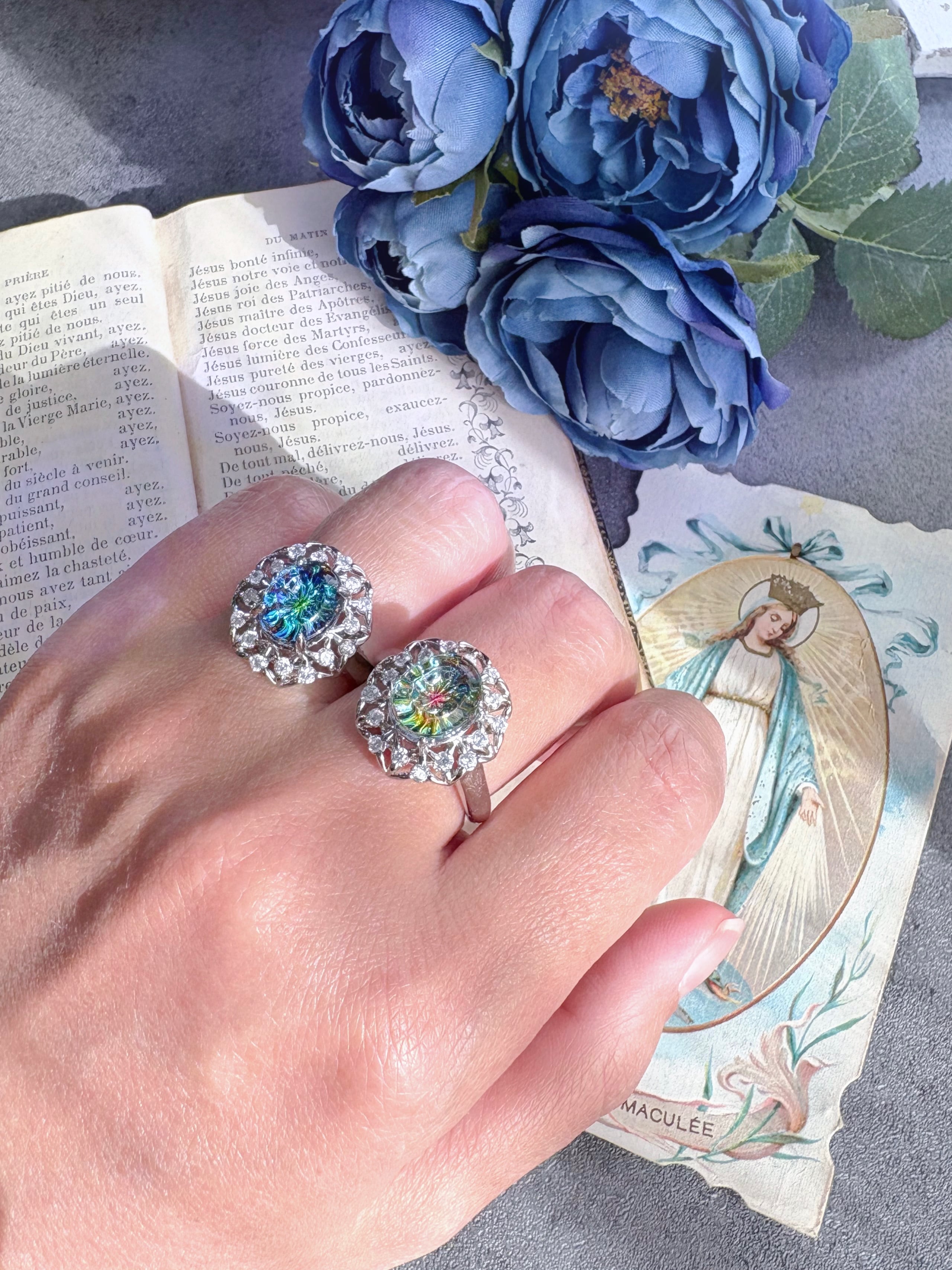 Silver zirconia glass ring